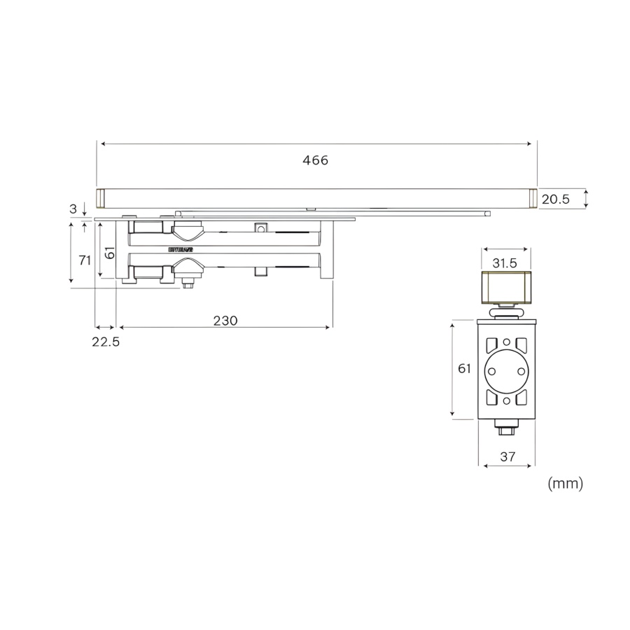 Tính năng: Điều chỉnh tốc độ đóng/mở, Chức năng giữ cửa (góc tùy chỉnh).