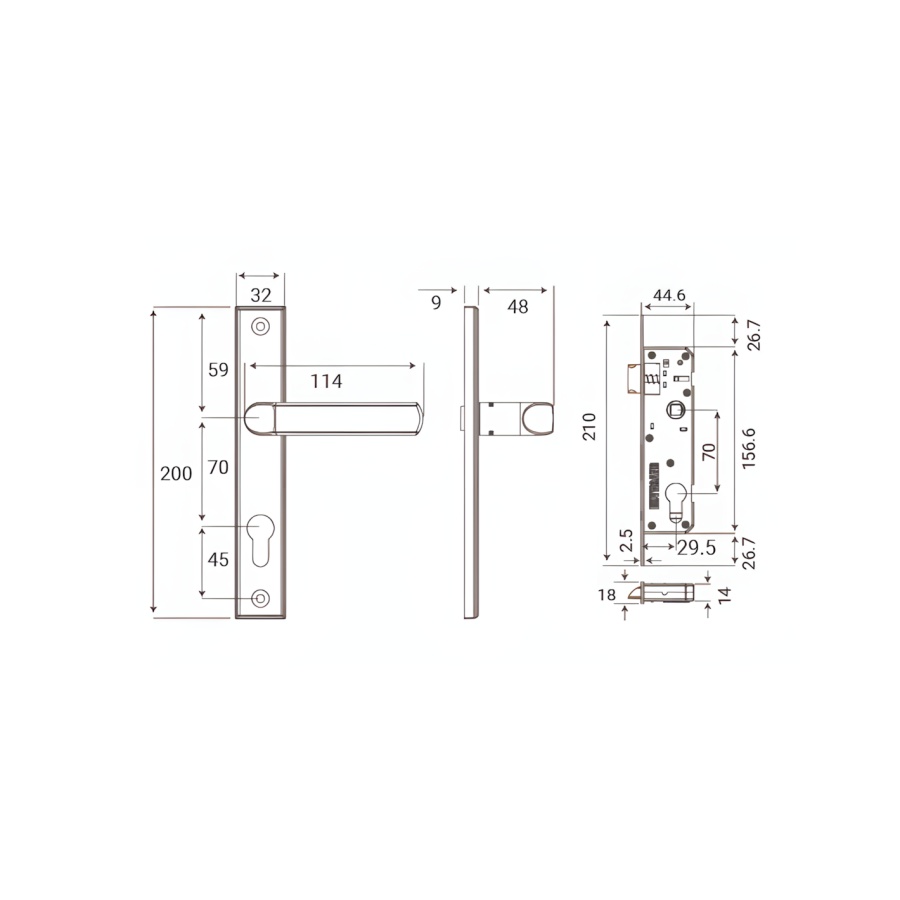 Chuyên dụng cho Nhôm Hệ Đa Dạng: Khóa có 2 phiên bản thân phù hợp với các loại nhôm hệ thông dụng (Hệ 55, Hệ XingFa) và 2 phiên bản ốp phụ phù hợp cho cửa 1 cánh hoặc 2 cánh.