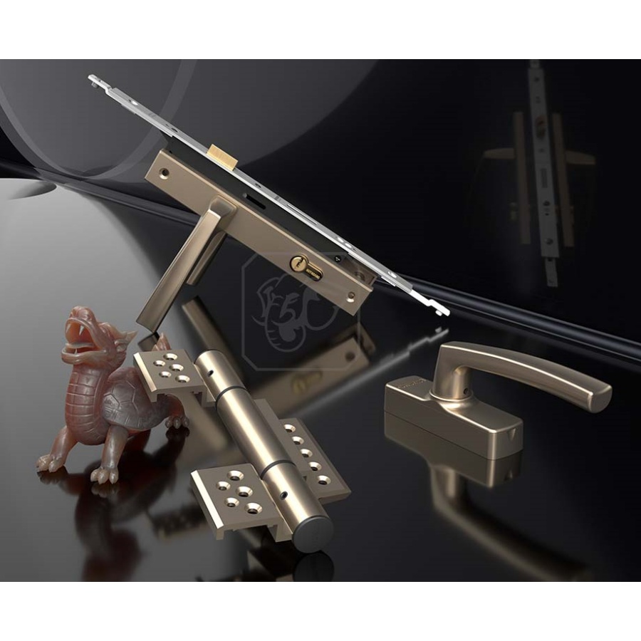 Khóa đa điểm Huy Hoàng APEX66: Tay nắm Hợp Kim, mạ Điện Zi Champagne (ZCP). Chuyên dùng cho cửa nhôm hệ/Xingfa. Then trượt đồng thau, khóa đa điểm an toàn.