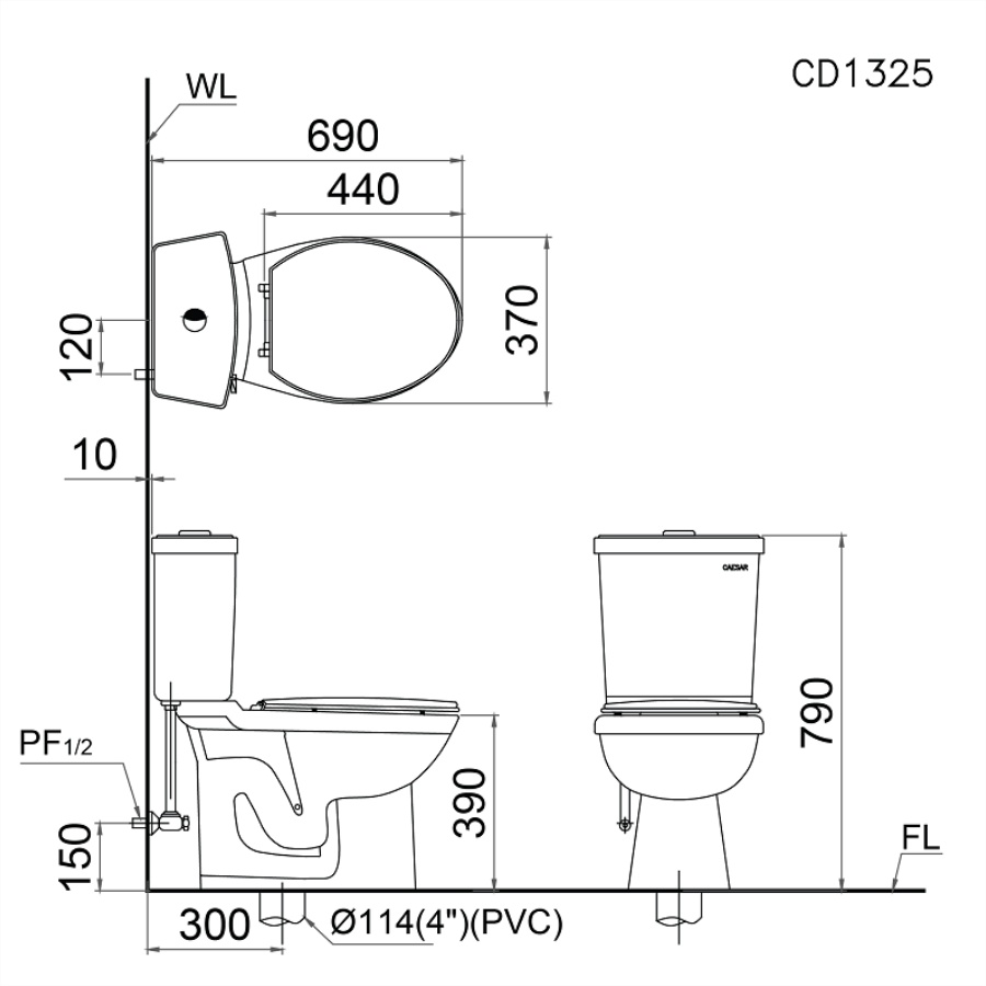 Bản vẽ bệt vệ sinh Caesar CDS 1325 két T1225