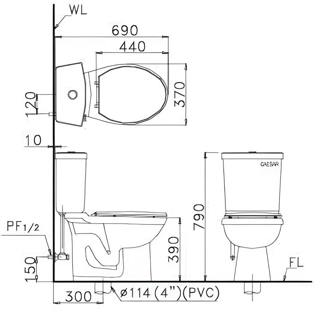 Bản vẽ Bàn Cầu CAESAR CTS1325 Thùng T1125 1 Nhấn Nắp Êm