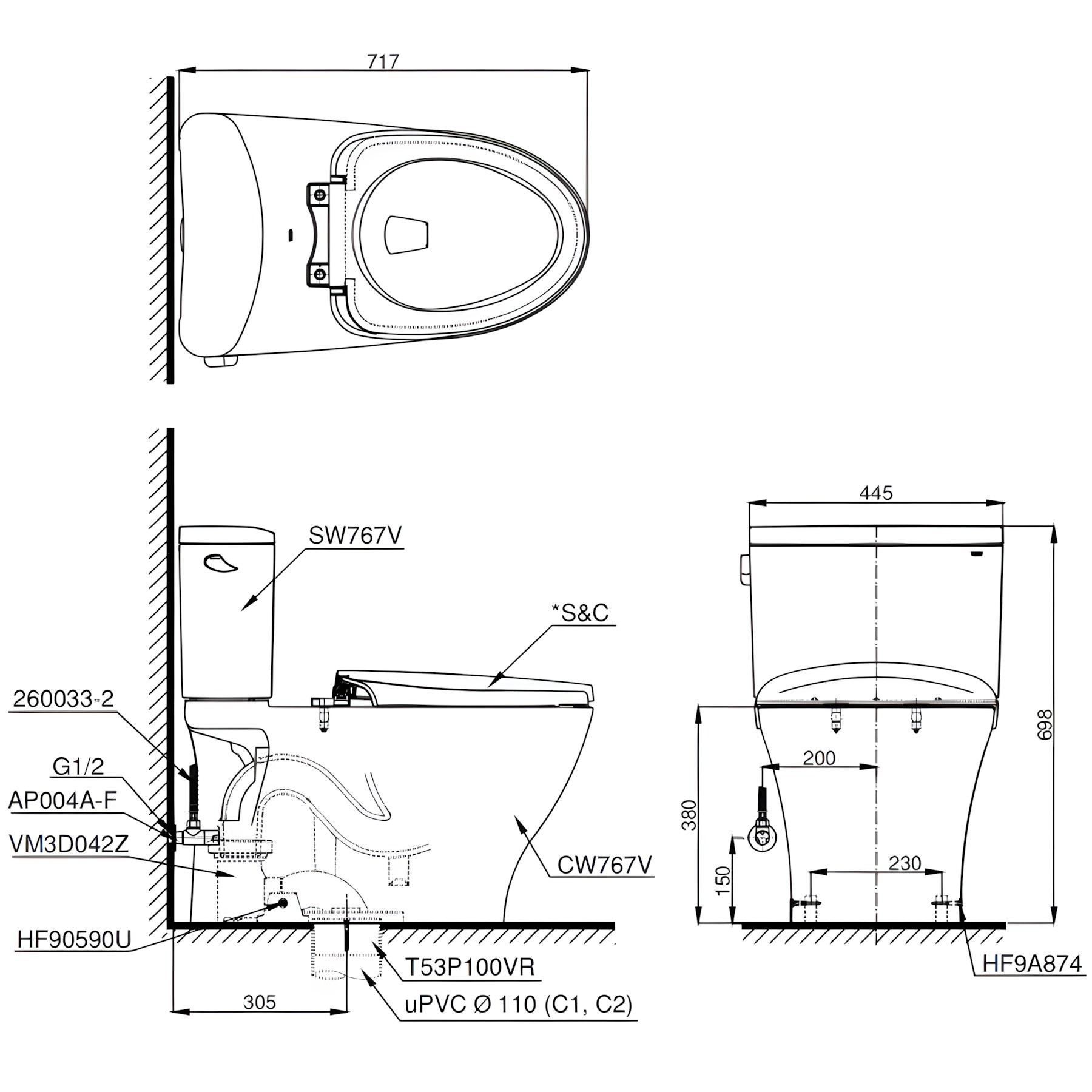 Bản vẽ Bàn Cầu TOTO CS767RE2 (CS767E2) Hai Khối Nắp Cơ