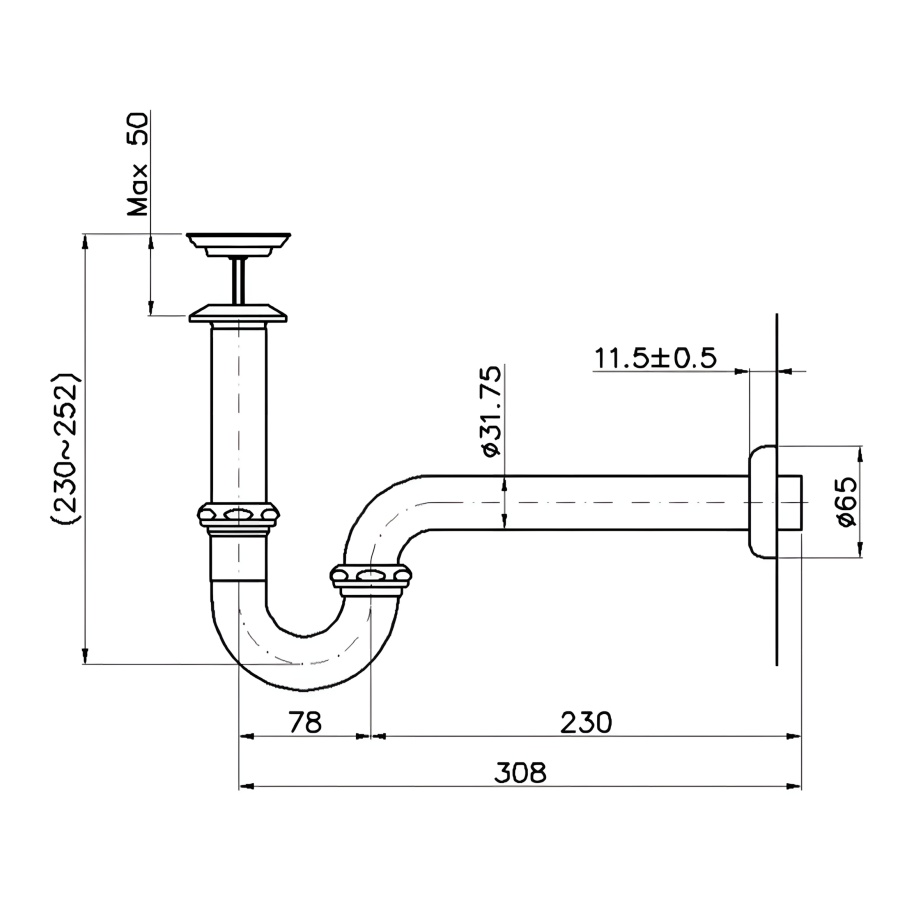 Tương thích cao: Sản phẩm được sử dụng khi tâm chậu cách tường nhỏ hơn 308mm, giúp tối ưu không gian và đảm bảo lắp đặt vừa vặn, gọn gàng.