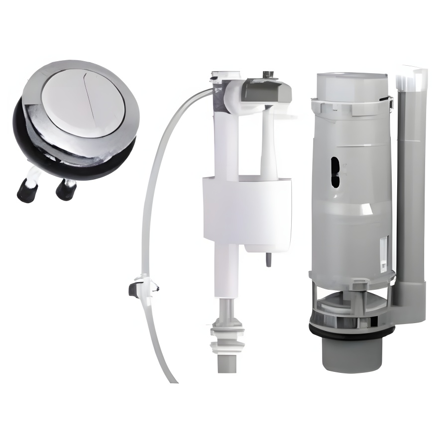 Bộ phận bao gồm: Phao cấp nước, Trụ xả nước 2 nhấn, Nút nhấn