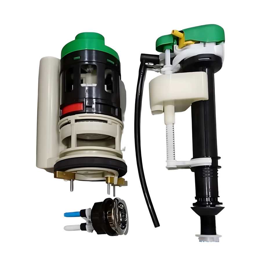 Các bộ phận bao gồm: Van cấp, Van xả, Nút nhấn, Khóa nước của bộ xả