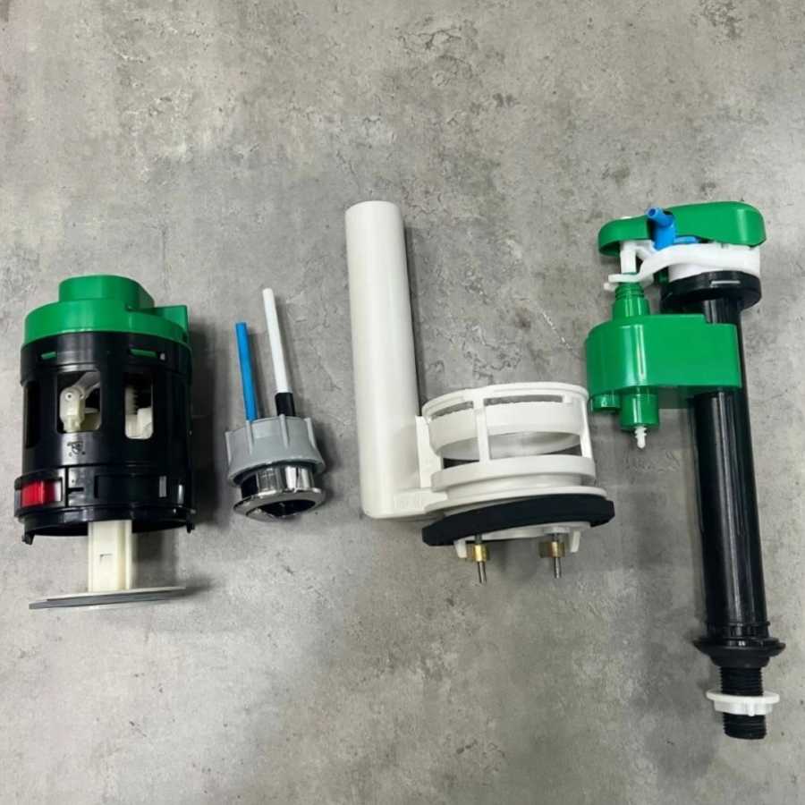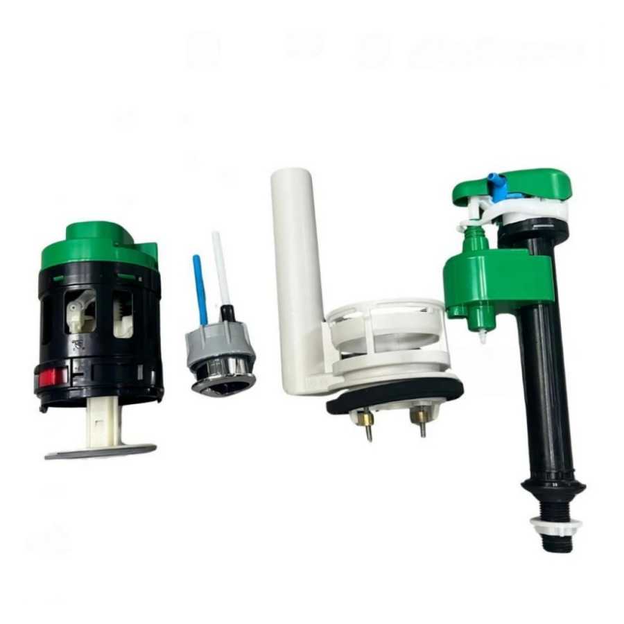 Các bộ phận bao gồm: Phao, Van xả đôi, Nút nhấn, Dây nước hồi