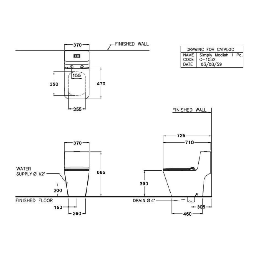 Bản vẽ kỹ thuật bồn cầu 1 khối nắp êm C10327 Bản vẽ kỹ thuật