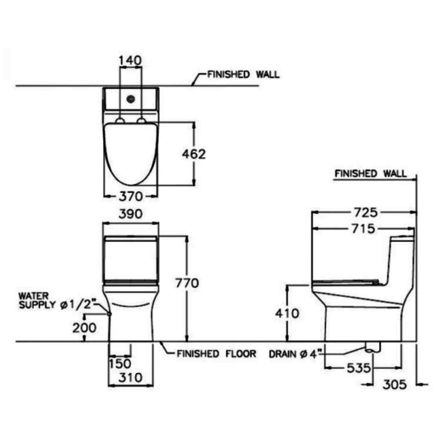 Lắp đặt dễ dàng: Với kiểu thoát S Trap và tâm thoát 305mm, bồn cầu này phù hợp với đa số cấu trúc đường ống phổ biến tại Việt Nam. Sản phẩm bao gồm van khóa và đế cầu, giúp việc lắp đặt trở nên thuận tiện.