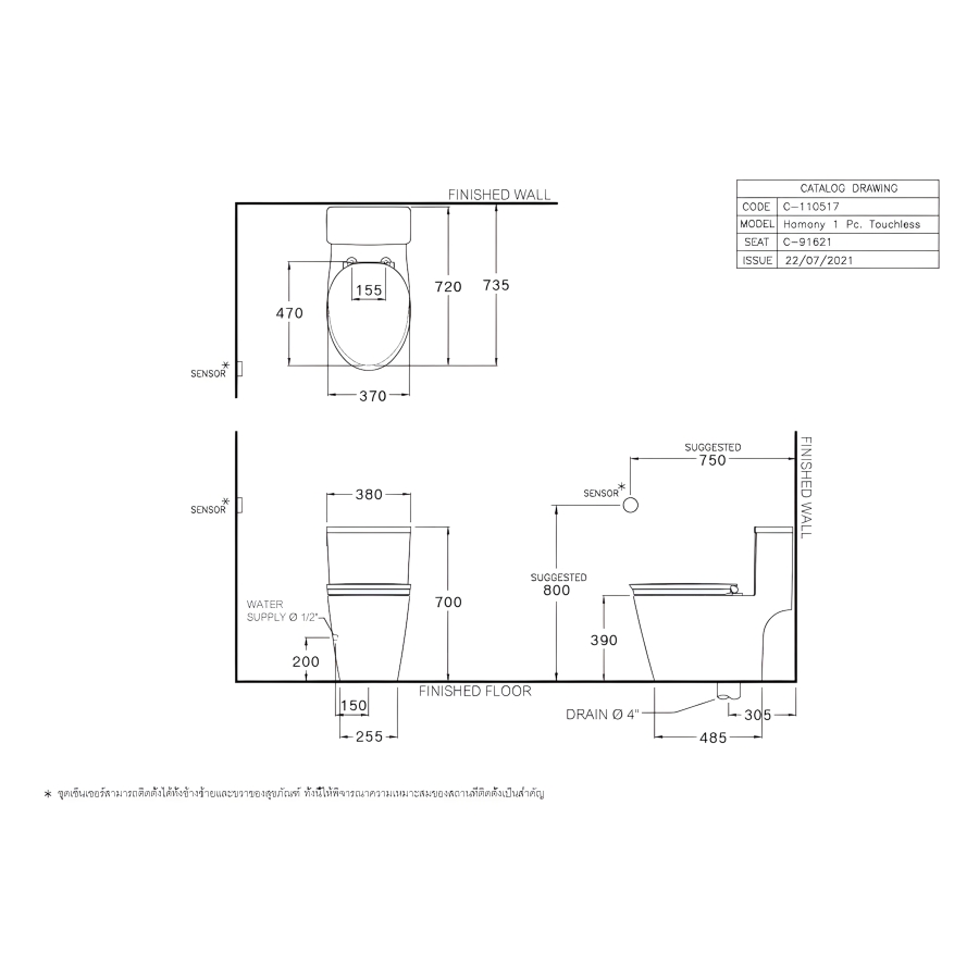 Bản vẽ Bồn cầu 1 khối COTTO C110507 nắp êm dòng Harmony