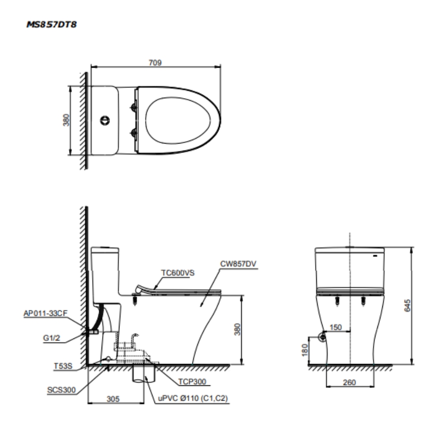 Bao gồm: Thân cầu C857D và Nắp bồn cầu TC600VS