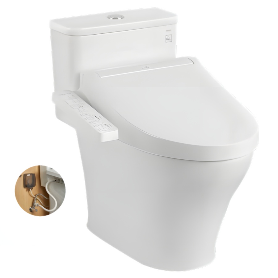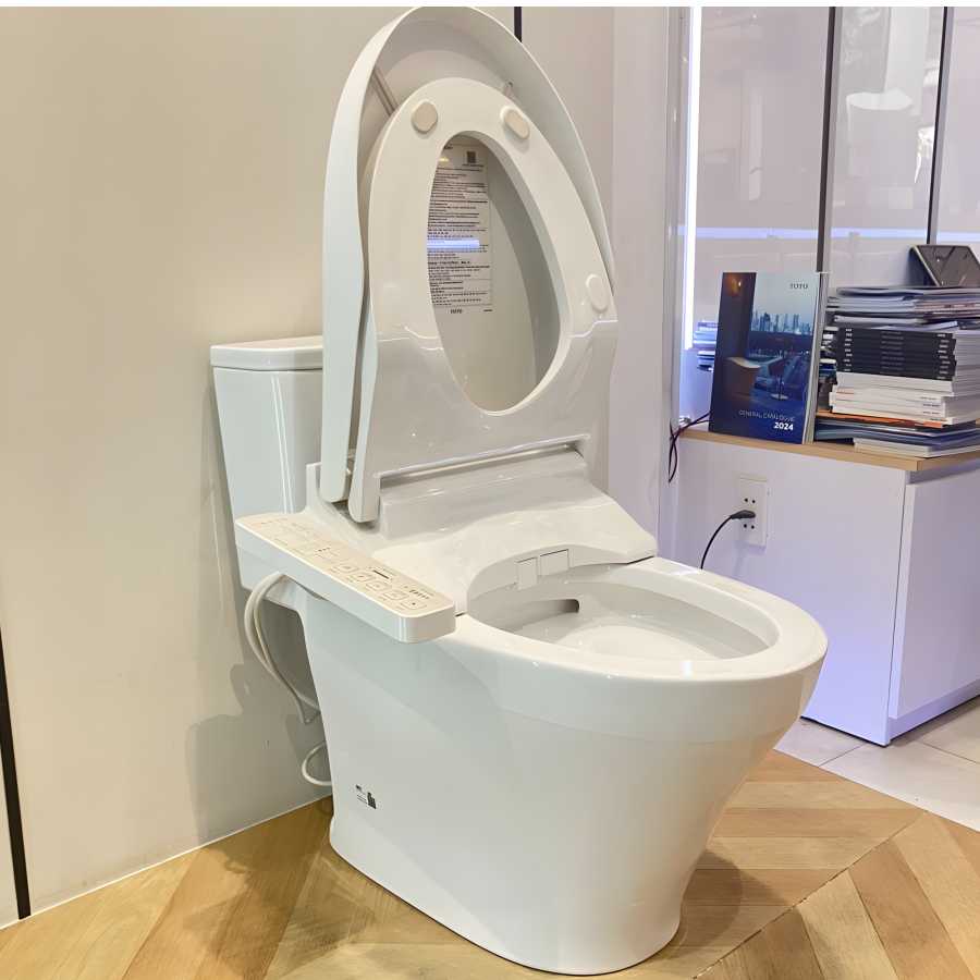 Bồn cầu TOTO MS857CDW17 một khối, nắp điện tử Washlet C2 TCF23460AAA giấu dây, công nghệ rửa thông minh, kiểu dáng hiện đại và sang trọng.