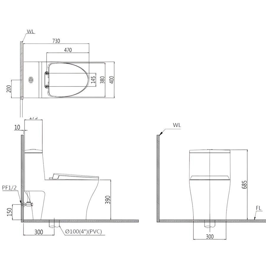 Bản vẽ Bồn Cầu CAESAR C1356 (CD1356) 1 Khối Nắp Êm