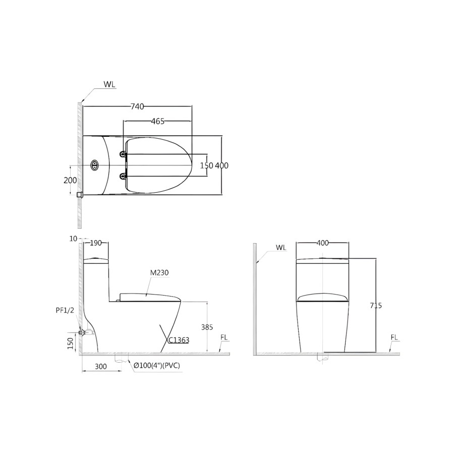 Bản vẽ Bồn Cầu 1 Khối Caesar CD1363