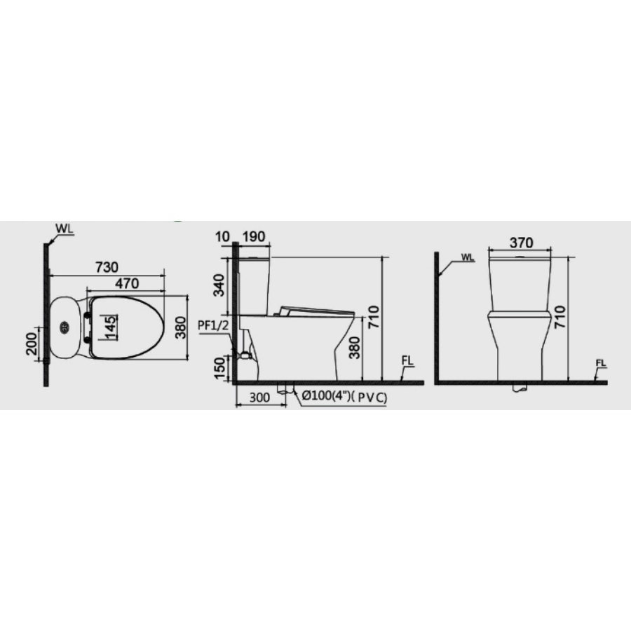 Bản vẽ Bồn Cầu CAESAR CD1320 Thùng T2220 Nắp Êm