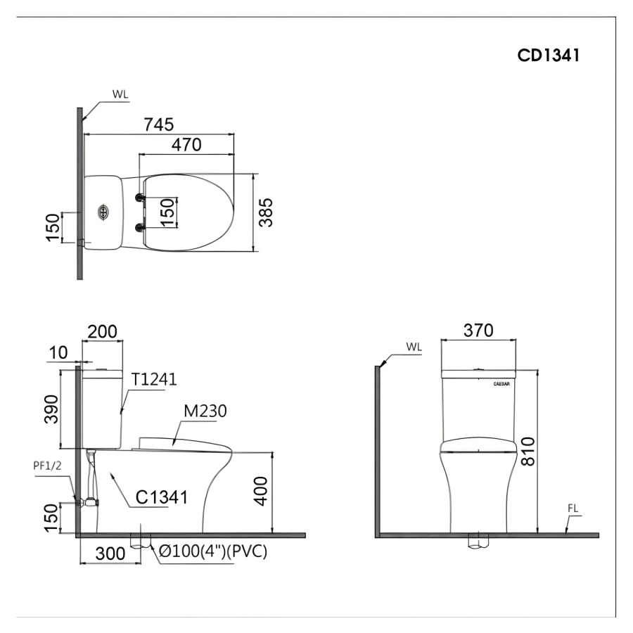 Bồn Cầu CAESAR CD1341 Thùng T1241 Nắp Êm