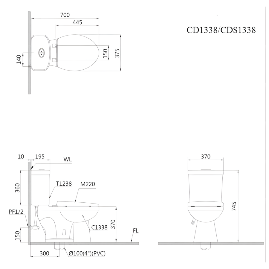 Tâm thoát phân: 300mm