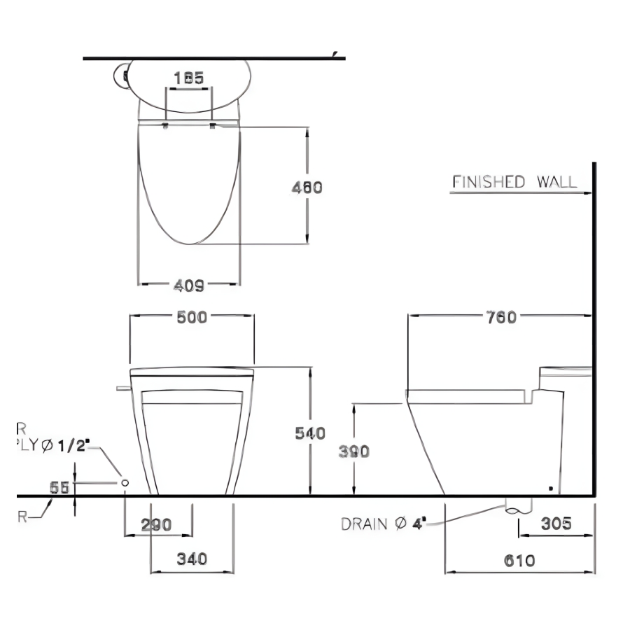 Bản vẽ Bồn Cầu COTTO C10047 Một Khối Paragon Cao Cấp