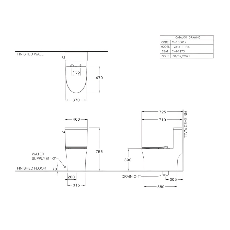 Bản vẽ kích thước bồn cầu C105617 Cotto