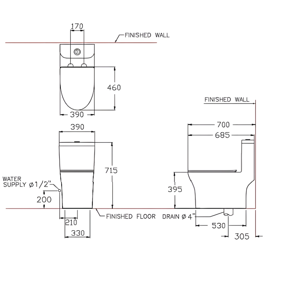 Tâm thoát sàn tiêu chuẩn: Với tâm thoát 305mm, bồn cầu Cotto này dễ dàng lắp đặt, phù hợp với hầu hết các cấu trúc đường ống thoát sàn hiện có tại Việt Nam.