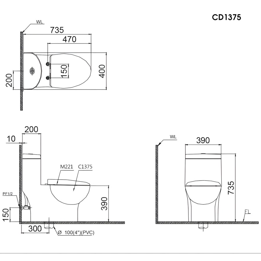 Bản vẽ Bồn Cầu Điện Tử Caesar C1375F+TAF512H