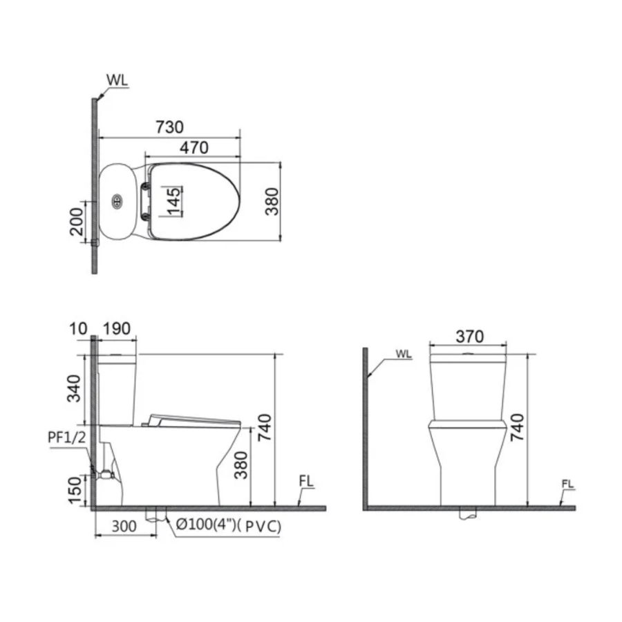 Dễ dàng lắp đặt: Với tâm thoát phân 300mm và kiểu xả xuống sàn, bồn cầu này phù hợp với đa số hệ thống ống nước tiêu chuẩn.