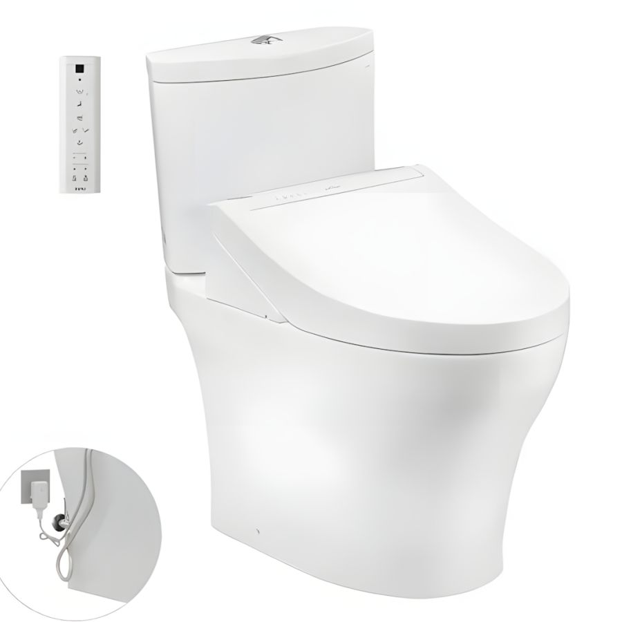 Điều khiển từ xa tiện lợi: Bồn cầu đi kèm remote cầm tay màu trắng (nhấn cơ) với 2 chế độ người dùng, dễ dàng tùy chỉnh mọi chức năng.