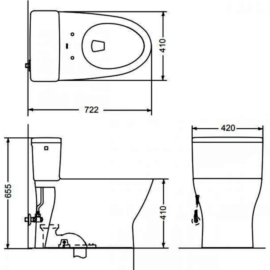Bao gồm: Van khóa, dây cấp nước, bích nối sàn T53P100VR (không đóng gói cùng thân cầu)
