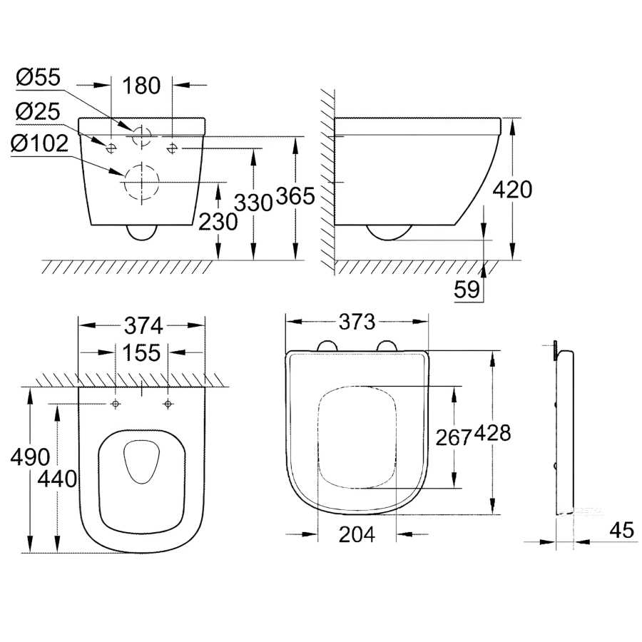 Bản vẽ Bồn Cầu Grohe 3920600H/39458000 Euro Ceramic Treo Tường