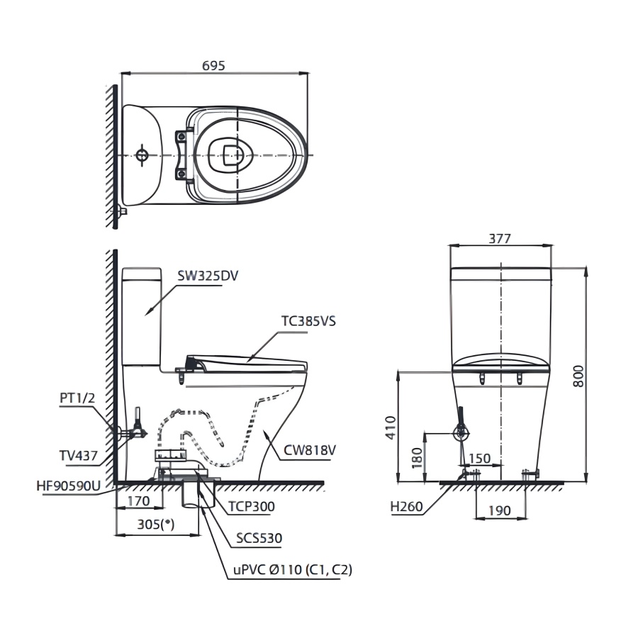 Bản vẽ kỹ thuật xí bệt TOTO CS818DT2