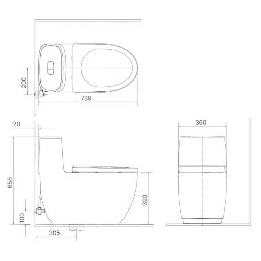 Kích thước bồn cầu (DxRxC): 739 x 360 x 658 mm