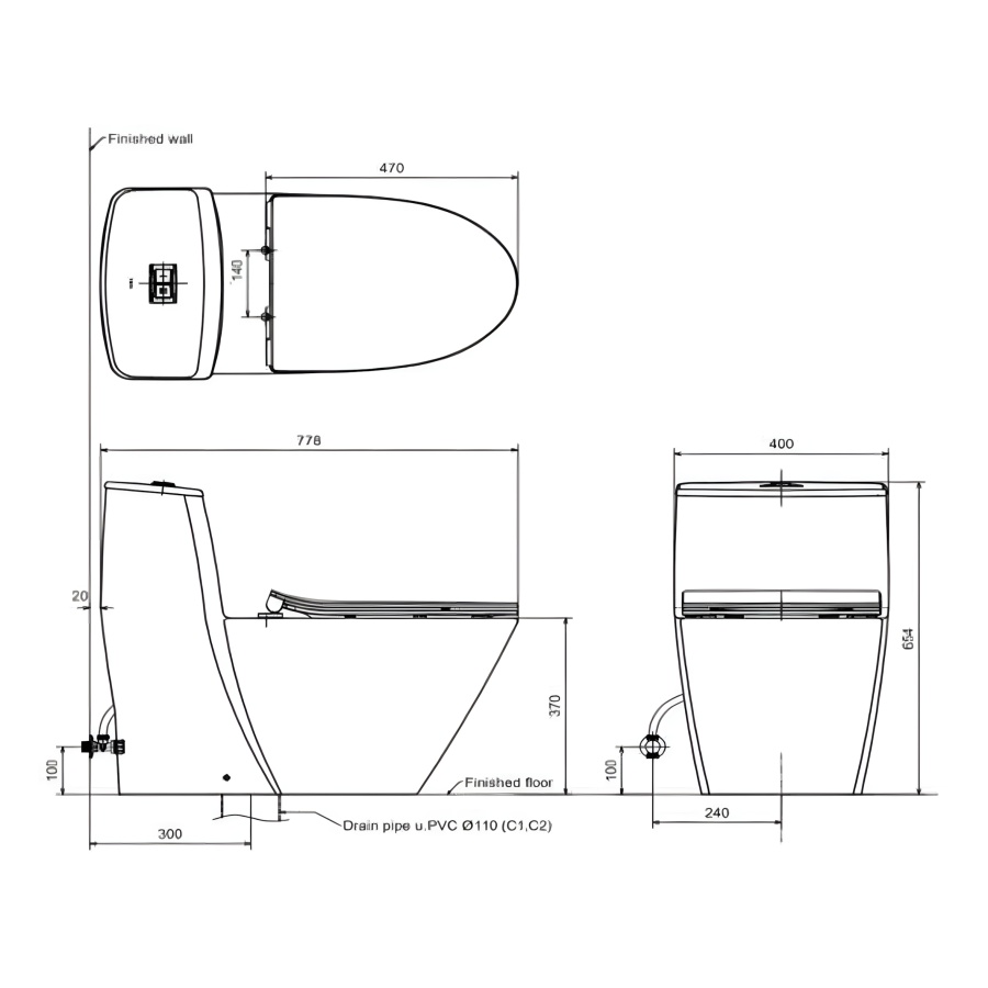 Bản vẽ Bồn Cầu INAX AC-919R/CW-S32VN Nắp Rửa Cơ