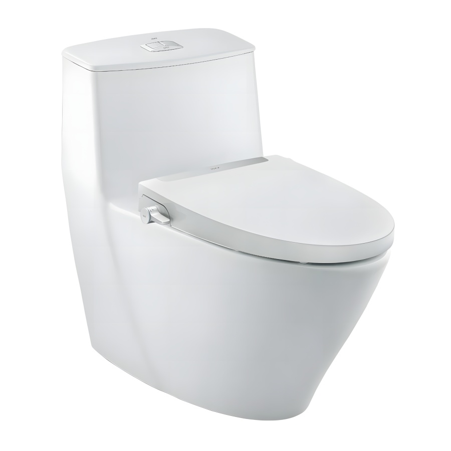 Thiết kế thông minh & dễ vệ sinh: Bồn cầu 1 khối thân kín, tối giản góc cạnh, nắp két nước mỏng. Dễ dàng làm sạch.