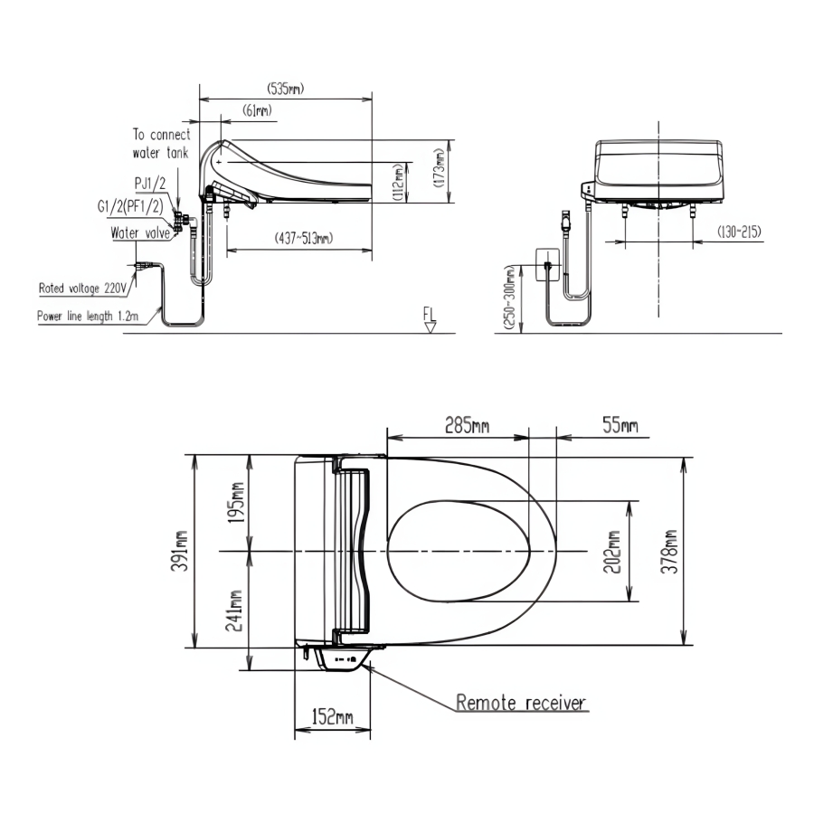 REMOTE CONTROL: Toàn bộ các chức năng của nắp rửa điện tử đều có thể điều khiển dễ dàng thông qua remote cầm tay tiện lợi.