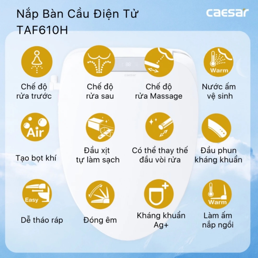 Công nghệ nắp rửa điện tử thông minh: Tận hưởng sự tiện nghi tối đa với nắp điện tử TAF610H, tích hợp nhiều chức năng vượt trội:
