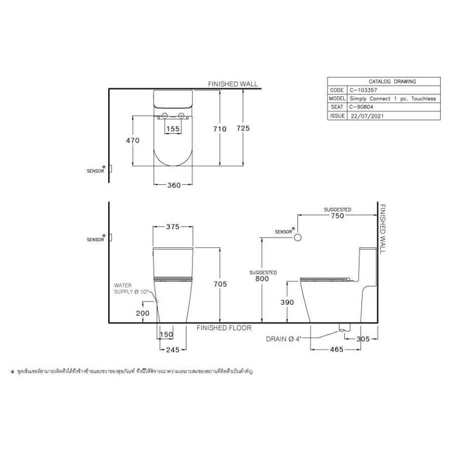 Bản vẽ Bồn Cầu Một Khối COTTO C103357 Dòng Simply Connect Nắp Đóng Êm