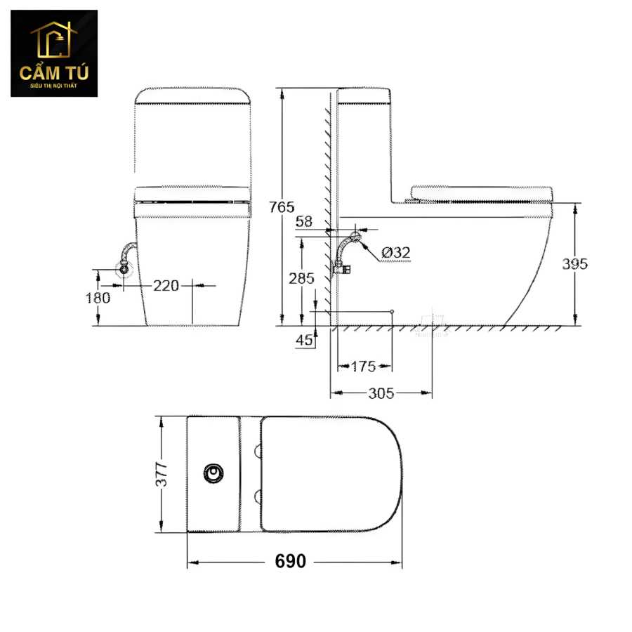 Kích thước tối ưu: Kích thước 690 x 377 x 765 mm giúp sản phẩm phù hợp với nhiều diện tích phòng tắm khác nhau, tạo sự cân đối và hài hòa.