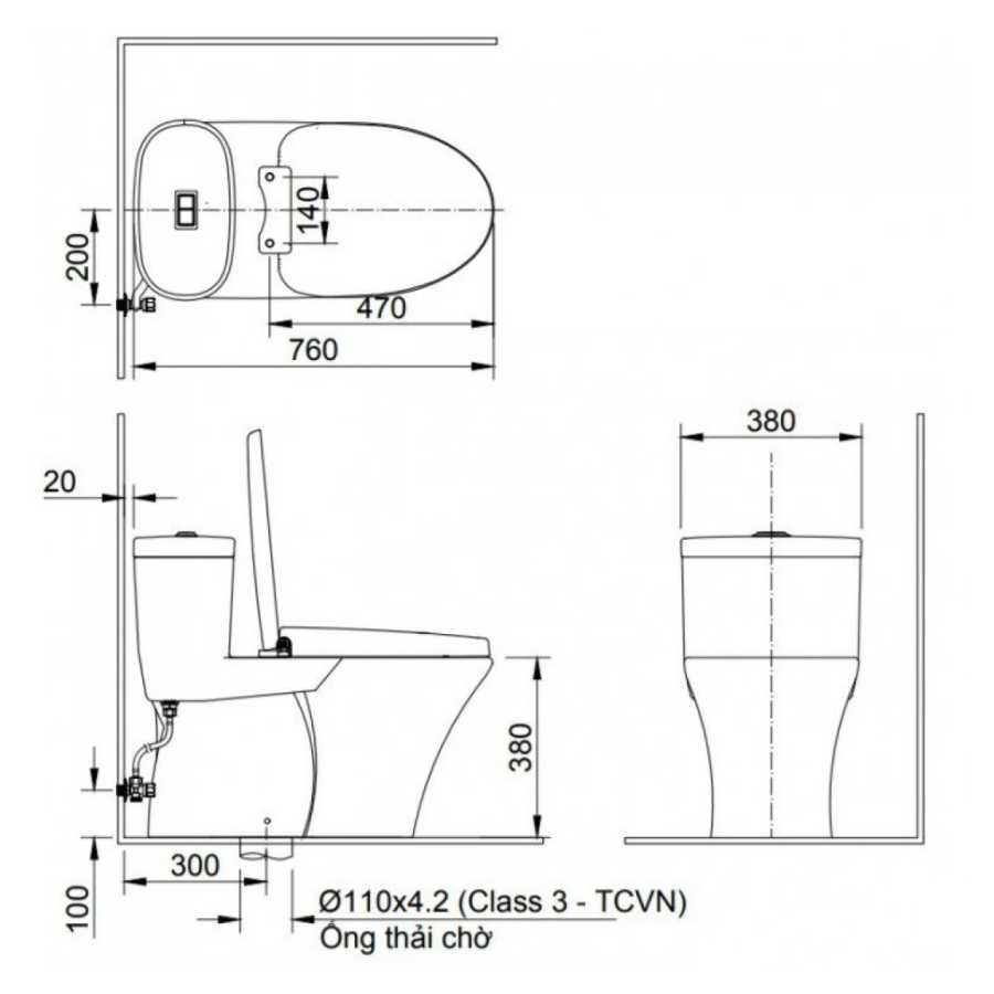 Xả hiệu quả & tiết kiệm nước: Hệ thống xả Siphon mạnh mẽ, xả nhấn 2 mức (4.8L/3.0L) giúp tiết kiệm nước.