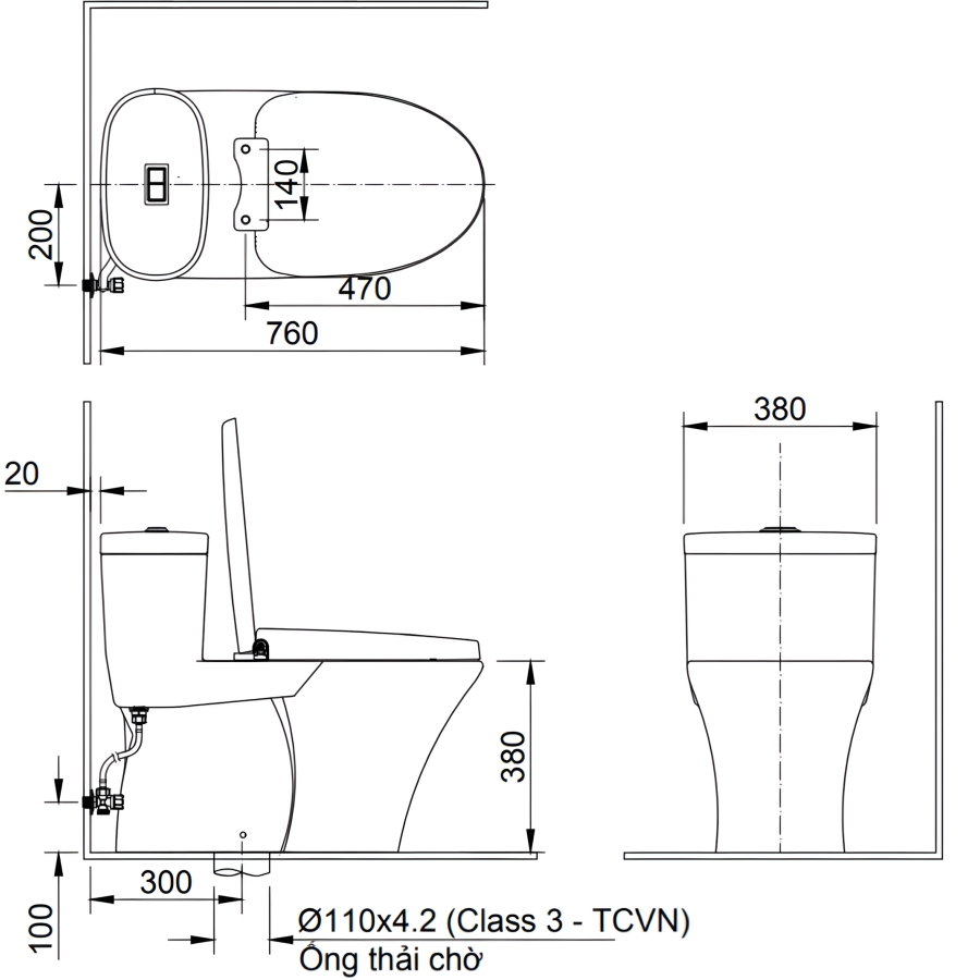 Lượng nước xả: 4.8L (xả đại) / 3.0L (xả tiểu)