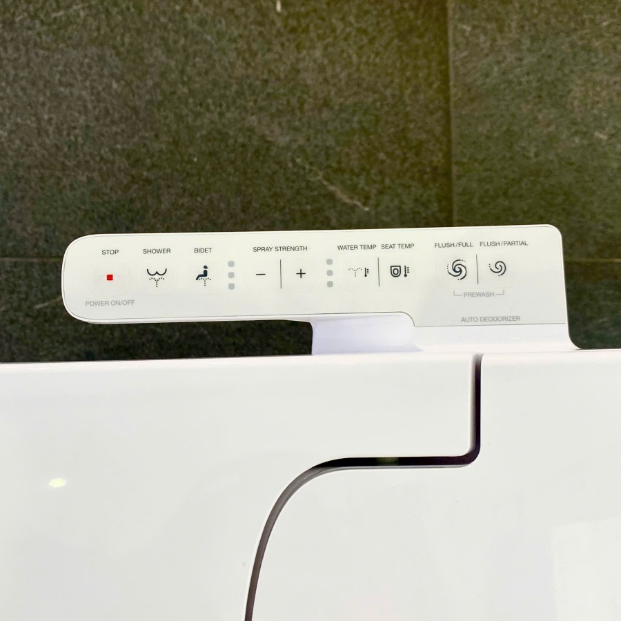 Chức năng phun rửa: PREWASH (xả tráng), Hai đầu phun rửa chuyên biệt (tự vệ sinh, 6 mức điều chỉnh cường độ), Kháng khuẩn Anti-bacterial, Tự động xả nước (sau 6s/điều khiển), Sưởi ấm bệ ngồi (3 mức nhiệt), Khử mùi lòng bầu (quạt ngăn mùi), Phun nước nóng (3 mức nhiệt).