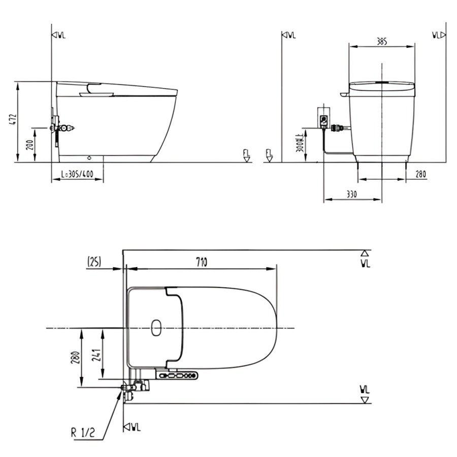 Bản vẽ Bồn Cầu Thông Minh Inax AC-816VN Saras Light-E