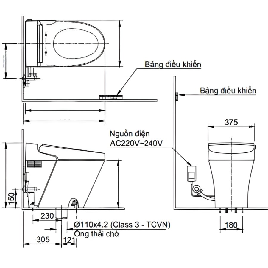 Kiểm tra nguồn điện và nước: Đảm bảo nguồn điện ổn định (220V) và áp lực nước trong khoảng cho phép (0,07~0,75MPa) để bồn cầu hoạt động tốt nhất.