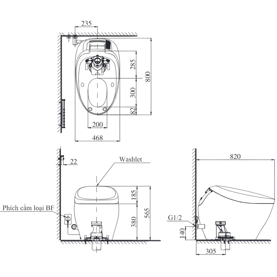 Bản vẽ Bồn Cầu Thông Minh TOTO CS901VT#NW1/T53P100VR Neorest NX II