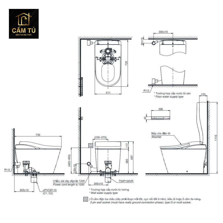 Bản vẽ Bồn Cầu Thông Minh TOTO CS911VT/TCF87120GAA/T53P100VR Neorest LS