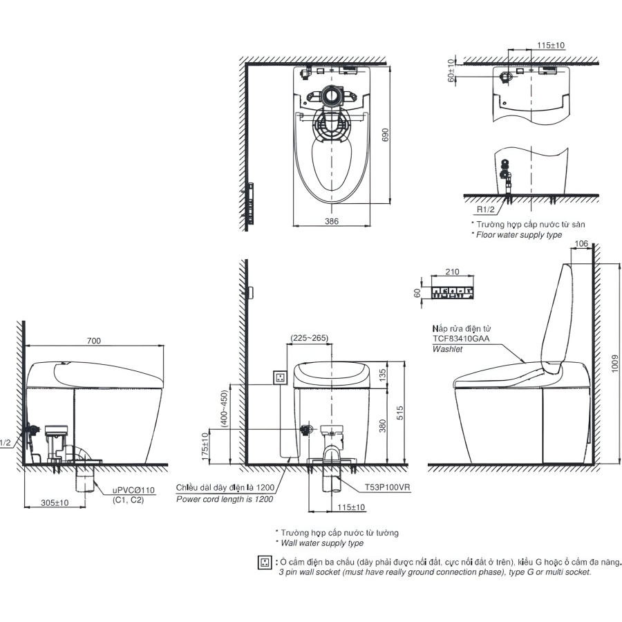 Bản vẽ Bồn Cầu Thông Minh TOTO CS921VT/TCF85510GAA/T53P100VR Neorest AS
