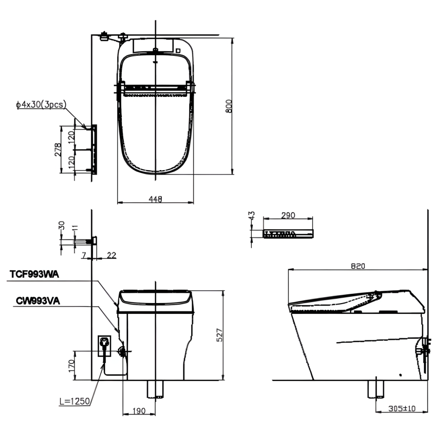 Bản vẽ Bồn Cầu Thông Minh TOTO CW993VA/TCF993WA Neorest XH II