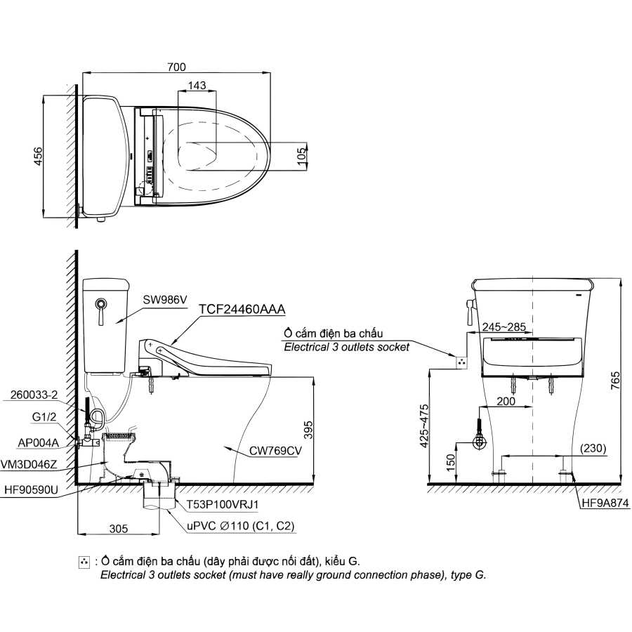 Nắp rửa điện tử: TCF24460AAA (W15) (Xuất xứ: Malaysia)