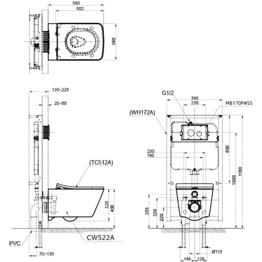 Bồn Cầu TOTO CW522A/TC512A/WH172A/MB170P#SS Treo Tường