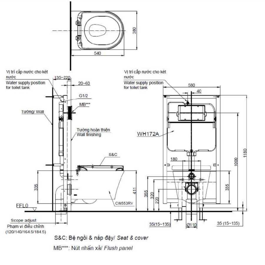 Bản vẽ kỹ thuật xí bệt TOTO CW762+TC384CVK+WH172A+MB175M#SS