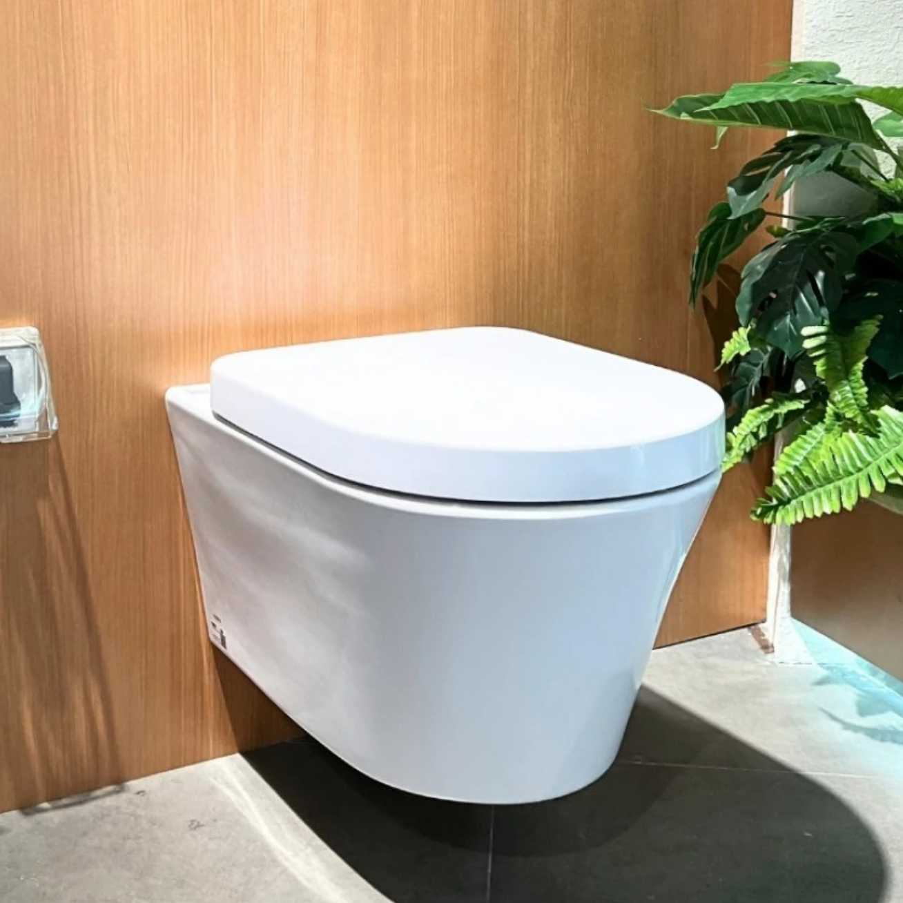 Thiết kế tối giản: Dáng chữ D gọn gàng, thanh lịch. Kiểu dáng treo tường tiết kiệm không gian, dễ vệ sinh sàn nhà.