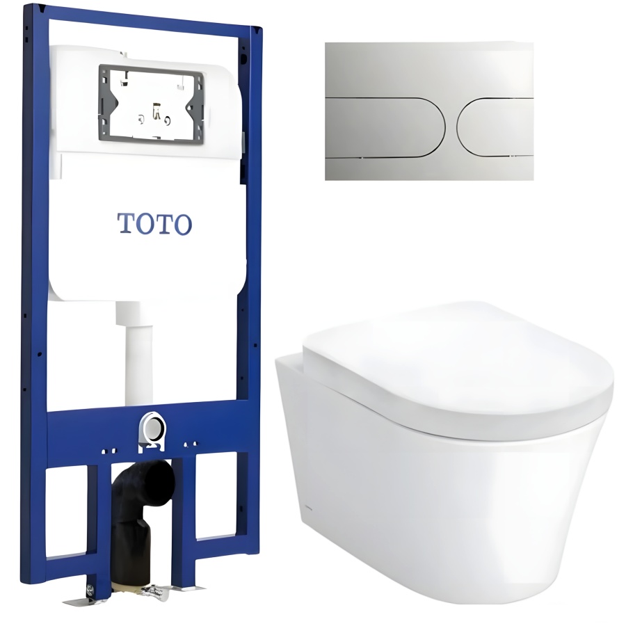 Bồn cầu treo tường TOTO CW522A kèm nắp TC512A, két WH172A và nút nhấn MB170P#SS – thiết kế âm tường tối giản, sang trọng và tiện nghi cho mọi không gian.
